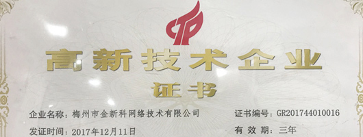 2017年12月11日,國家高新技術(shù)企業(yè)認定服務平臺對外公布了“廣東省2017年第二批擬認定高新技術(shù)企業(yè)名單”,梅州市金新科網(wǎng)絡技術(shù)有限公司作為一家互聯(lián)網(wǎng)信息化服務類高科技產(chǎn)業(yè)的公司,順利通過認定,榮登榜單之中!